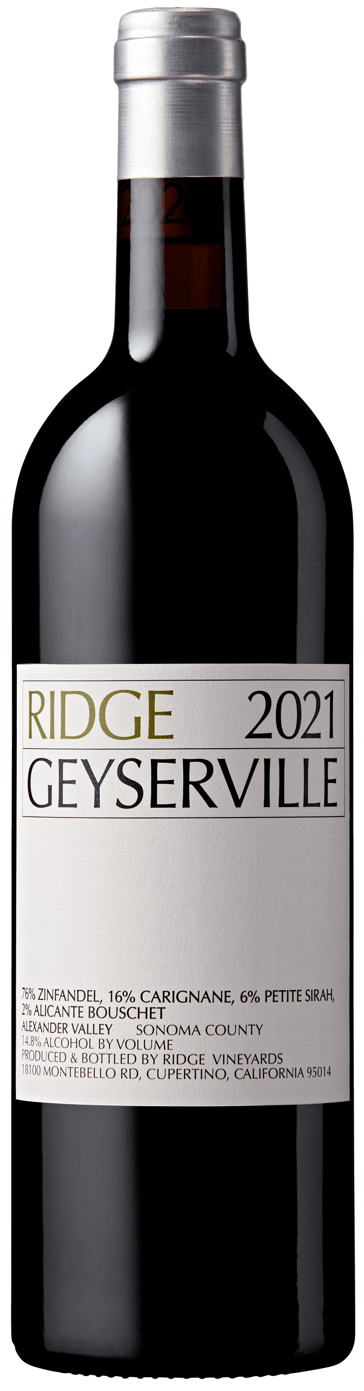 Ikoniškas vynas "Ridge Geyserville" yra tradicinių ‘Zinfandel‘ ir papildomų veislių mišinys: ‘Carignane‘, ‘Petite Sirah‘ ir ‘Alicante Boushet‘. Tai vienas iš brandžiausių "Ridge" vynų. "Geyserville" savo skonį išlaiko ir po dešimties metų.
