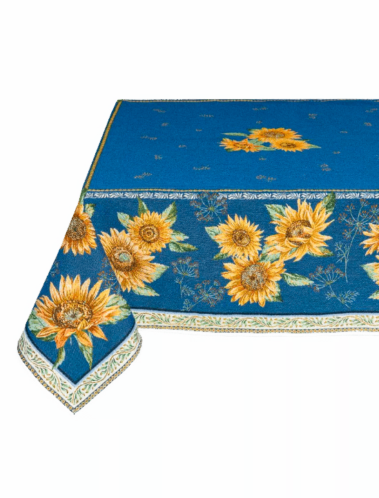 Prabangi, austų saulėgrąžų žiedų raštais puošta, žakardinė staltiesė sukurs tikrą Prancūzijos Provanso atmosferą ant Jūsų stalo.