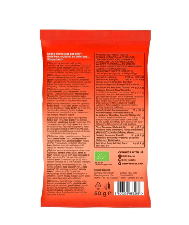 Bett'r ekologiškos sūdytos avižų lazdelės su jūros druska 50 g