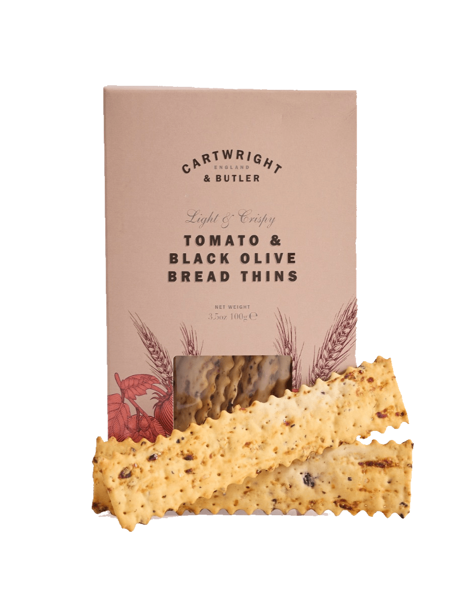 „Cartwright & Butler“ ilgametė kepimo patirtis leido sukurti tobulai plonas ir traškias kvietines duoneles. Siekta išgauti lengvą tekstūrą ir malonų traškesį, o kai tai pavyko – atėjo laikas pridėti išraiškingų skonių. Taip gimė klasikinis pomidorų ir juodųjų alyvuogių derinys – harmoningas, Viduržemio įkvėptas skonis, kuris sužadina apetitą. Šios duonelės puikiai dera su sūriais, užtepėlėmis ar kaip gurmaniškas užkandis prie vyno taurės.