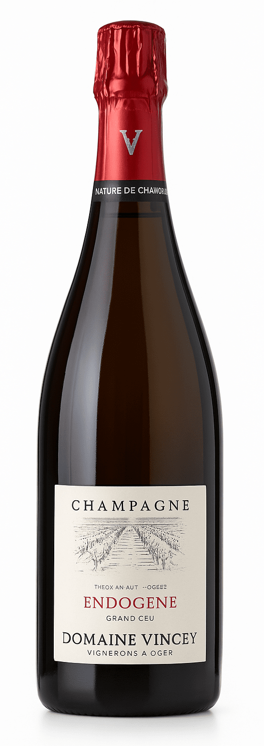 Champagne Domaine Vincey Endogène Tirage au Mout Oger Grand Cru 2021 – an exceptional, limited-edition Blanc de Blancs that captures the very essence of Oger Grand Cru – purity, tension, and subtle chalky minerality. This Champagne represents the pinnacle of Florence and Quentin Vincey’s craftsmanship, embodying their uncompromising pursuit of authenticity, where the terroir speaks for itself.
