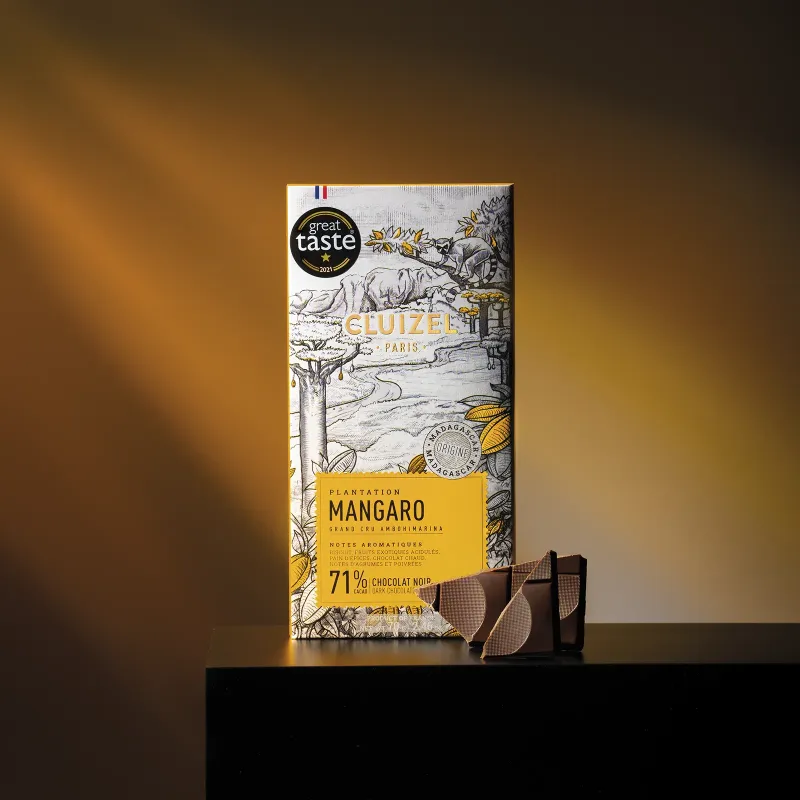 Embark on a flavour journey to the exotic Mangaro Plantation in Madagascar with this exceptional 71% cocoa dark chocolate from Michel Cluizel. One square is enough to feel the spirit of the tropics – this bar is crafted for those seeking a refined, distinctive and expressive taste experience.