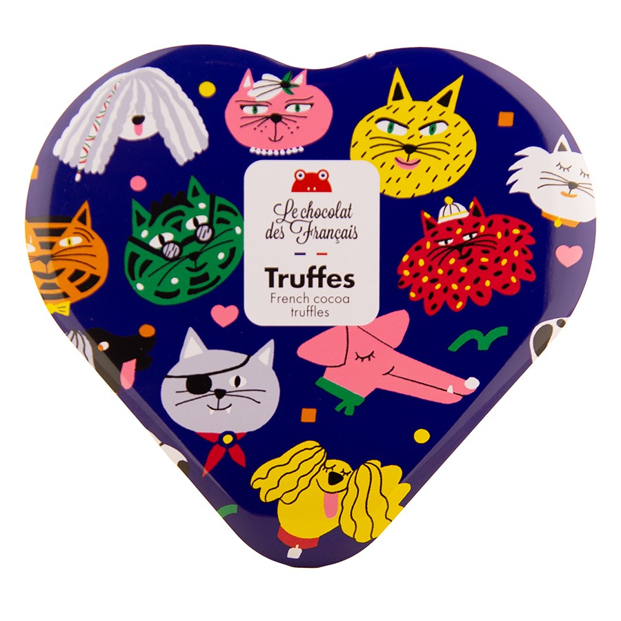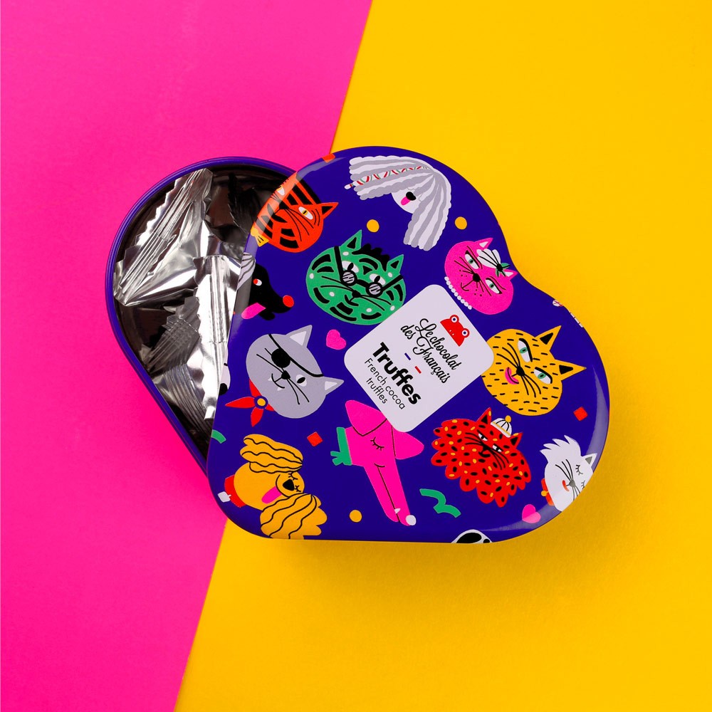 Švelnus, kreminis vidus ir sodri kakavos galia, sukuria nepakartojamą tekstūrą ir skonio gilumą. Tai triufeliai, kurie sujungia paprastumą, eleganciją ir tikrą prancūzišką saldumynų meistrystę. Žaismingą, spalvomis pulsuojančią gyvūnų iliustraciją šiam skonių duetui sukūrė kūrybinis duetas „Cachete Jack“ – menininkės, kurių piešiniai visuomet suteikia produktams išskirtinio charakterio.