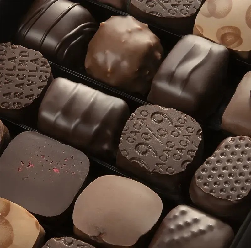 Visi saldainiai pagaminti be pridėtinių kvapiklių, remiantis „Noble Ingredients“ filosofija, kuri užtikrina tik aukščiausios kokybės natūralių žaliavų naudojimą: gryną kakavos sviestą, Burbono vanilės ankštis ir kruopščiai atrinktą cukrų. Tai įsipareigojimas kokybei, leidžiantis išlaikyti autentišką šokolado skonį ir išskirtinį aromatų grynumą.