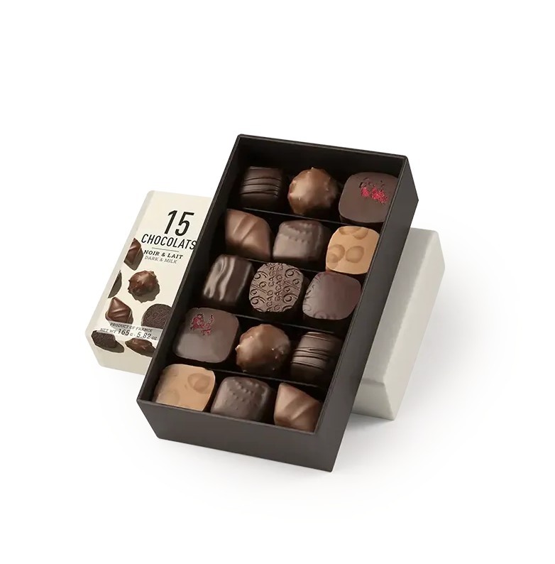 „Coffret Noir & Lait N°15“ – puikus pasirinkimas norintiems pažinti Michel Cluizel meistrystę, pasidalinti saldžiu malonumu ar pradžiuginti ypatinga dovana. Kiekvienas saldainis – tai mažas gurmaniškas nuotykis, suteikiantis akimirką tikro šokoladinio džiaugsmo.