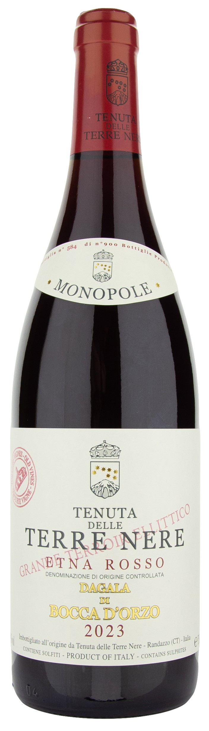 Terre Nere Dagala di Bocca d'Orzo Etna Rosso 2023 - tai itin koncentruotas, vietos charakterį tiksliai perteikiantis Etna Rosso iš atskiro Bocca d'Orzo vynuogyno Randazzo apylinkėse, Etnos šiauriniame šlaite. Vynas gaminamas iš 100 % ‘Nerello Mascalese’, auginamų maždaug 0,75 ha sklype 800 m aukštyje, iš 70–80 metų vynmedžių, o metinė gamyba yra labai maža – apie 800 butelių.